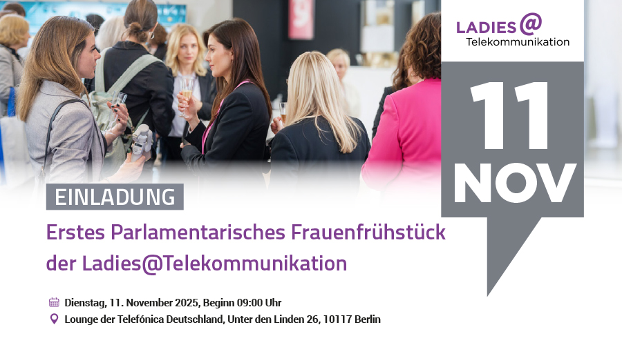 Vor diesem Hintergrund laden die Ladies@Telekommunikation herzlich ein zum ersten Parlamentarischen Frauenfrühstück in Berlin.