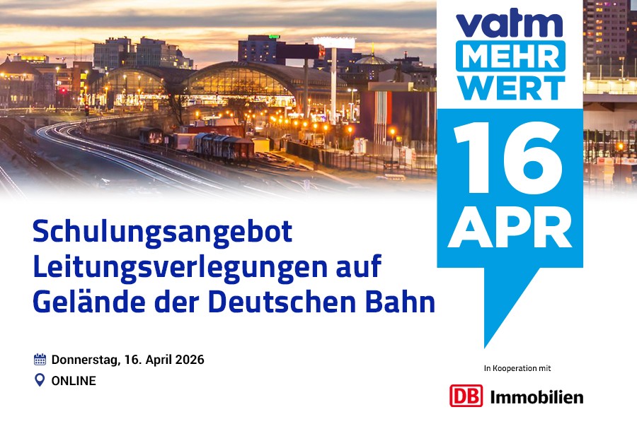 Im Rahmen unseres neuen Formats VATM-Mehrwert freuen wir uns, Ihnen das Schulungsangebot der Deutschen Bahn AG, DB Immobilien – Grundsätze Leitungsverlegung auf dem Bahngelände – Antragstellung über Online-Antragsportal der DB – anzukündigen.