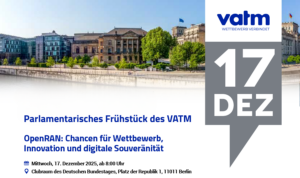Find out more »Die Pan Dacom-Gruppe lädt ab Februar 2026 zur Technologie-Roadshow in vier deutschen Städten ein. Melden Sie sich gerne zum eintägigen Business-Brunch in Ihrer Nähe an. Die Themen ranken sich rund um Netzwerktechnologie. Von Seiten des VATM wird unser Geschäftsführer Dr. Frederic Ufer als Gastredner zum…